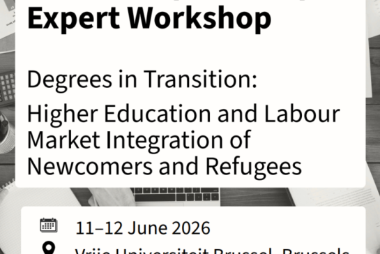 Practical info12/03/2026 - 08:00 - 15/04/2026 - 23:59Papers submission Deadline on 15/04 - Degrees in Transition: Higher Education and Labour Market Integration of Newcomers and Refugees