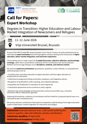 As part of the Flemish Science Agency (FWO)-funded SBO research project From Camp to Campus, we re organising an international expert workshop that will bring together scholars working at the intersection of higher education, labour market integration, and newcomer trajectories.
